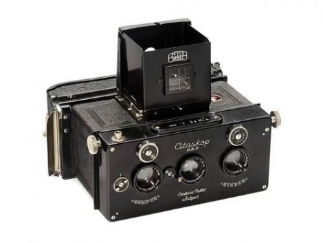 Citoskop来自Contessa Nettel。它是用于45 x 107mm平板的坚固的金属机身立体摄像机。