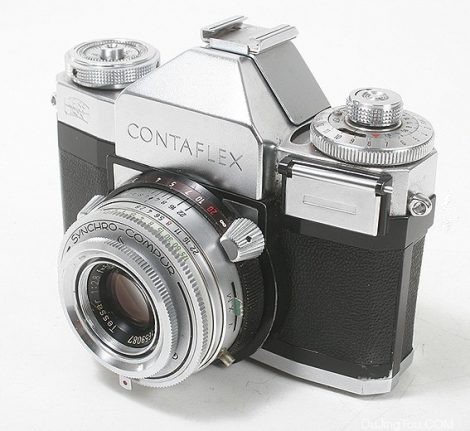 我不知道蔡司是否在市场上看到了需求,或者(我认为可能性更大),在试图为所有人创造万物的过程中,他们无意中填补了以前不存在的一部分市场。1953年,他们推出了Contaflex,重新使用了过去的传奇名字。与第一款Contaflex(TLR)不同,这不是其产品线的旗舰产品,而是针对精巧能欣赏反射式观看效果的业余爱好者。这是一个35毫米单镜头反光镜,带有内置棱镜取景器,以及叶片快门Synchro-Compur快门,而不是焦平面快门。镜头是固定的45 / 2.8 Tessar,性能不俗,这些规格和合理的价格(大约是Exakta,Leica或Contax的价格的一半)在市场上很受欢迎。