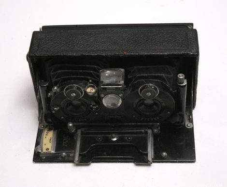 Stereolette是用于板或切膜的45 x107mm折叠式立体相机。它有三种版本,分别是具有齿条和小齿轮聚焦的610和具有径向杠杆聚焦的611。最终版本是Stereolette Cupido,它是一种可自行安装的45 x 107mm折叠式立体摄像机。三种型号都有一个出色的取景器,类似于安装在镜头之间的许多折叠相机中常见的取景器。所提供的镜头包括60 / 6.8 Helkas或65 / 6.3或65 / 4.5 Tessars,安装在双拨盘设置的Compur百叶窗中.610和611型号的前部上升,而Cupido则没有。
