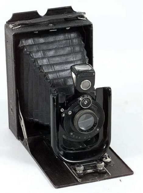 Taxo是一种廉价的折板相机。车身由金属制成,覆盖有皮革,并具有单个伸缩波纹管。它有两种样式。基本模型通过在轨道上滑动前标来获得焦点。它以两种尺寸列出,分别为122/3(6.5 x 9厘米)和122/7(9 x 12厘米)。