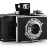 UniveX AF-2型于1936年发布,带有黑色,红色和镀铬装饰艺术风格的面板,快速释放的风箱按钮和后铰链。价格为1.50美元。