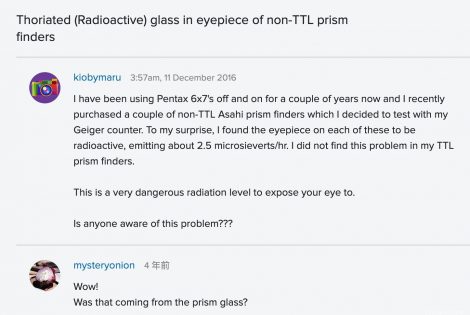 而且还有国外的网友直接评论说:如果你现在能指出一家相机制造商实际上在目镜中使用钍,告诉我,我会起诉,并关闭他的公司。