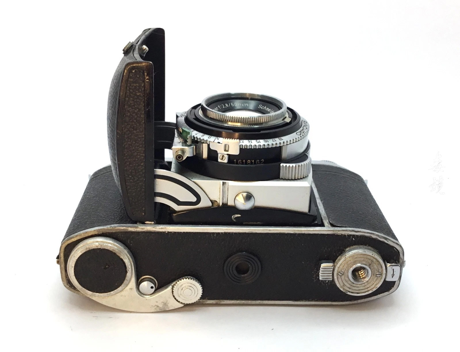 与IIc和IIIc使用的六片式xenar镜头不同,Retina Ib配备的是一枚四片式施耐德Xenar镜头,这枚镜头为50mm f/2.8,不可更换。