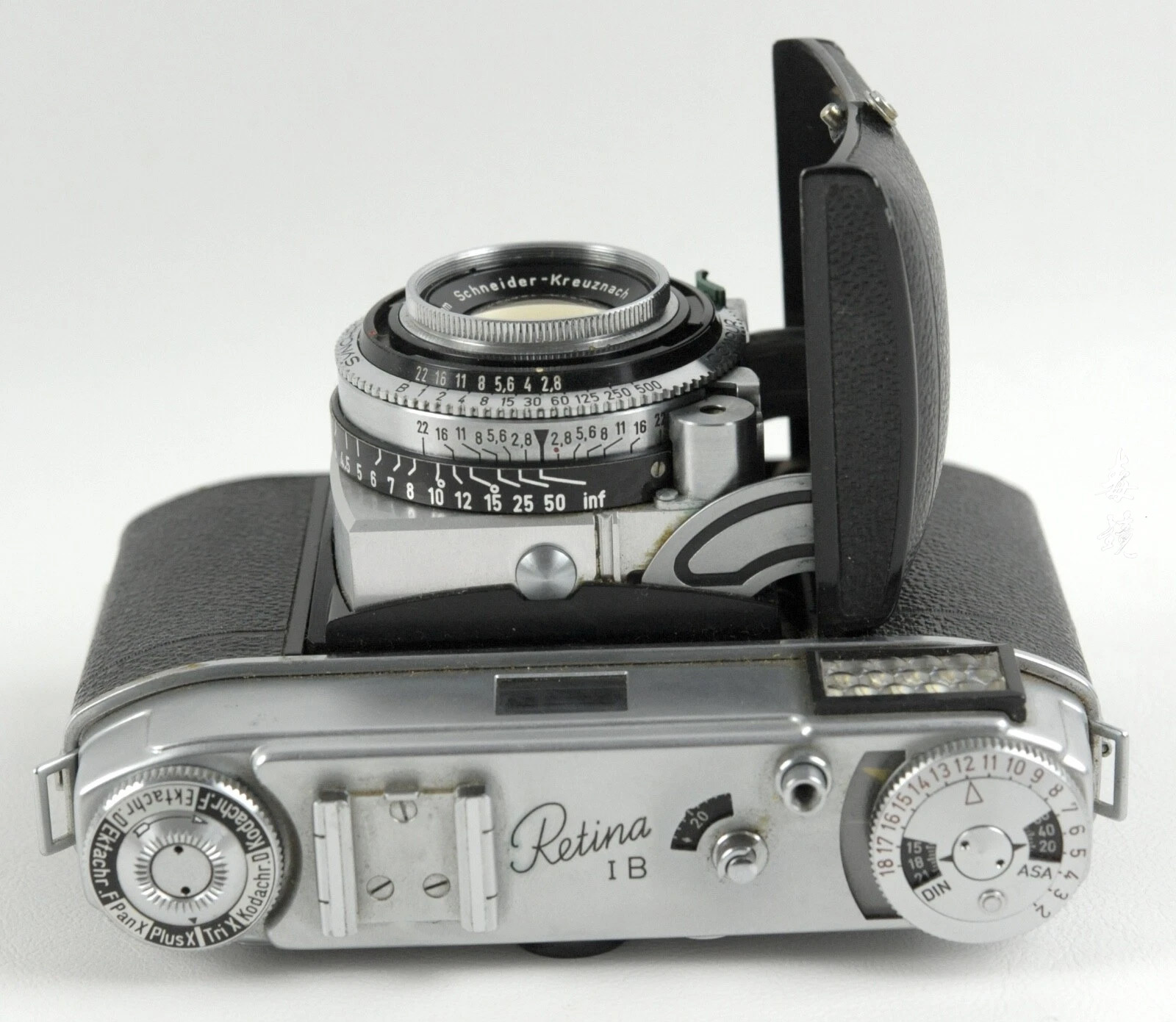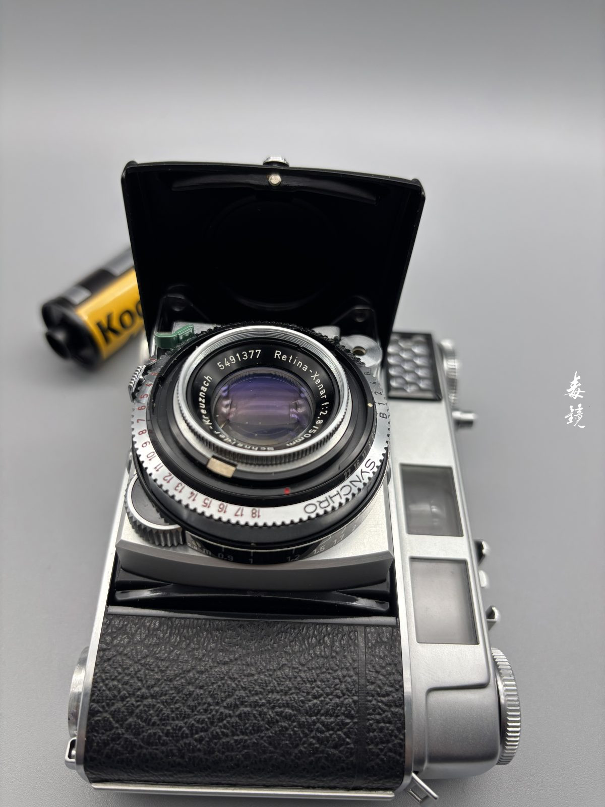 这款相机生产于1958年至1960年,是Retina Ib型019(Ausf I型)的延续 ,但增加了一个亮线取景器。它的外观与Retina IIIC非常相似,并且原件有些是通用的,我就拿这个的齿条替换了iiiC的,当然,它没有测距仪。 ,其顶部外壳的样式在生产中期改为了线条简洁的外壳。