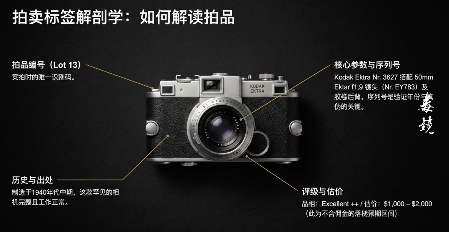 | 135相机 (35mm) | 24×36, 18x24mm (半格) | Leica M/螺口系列、Nikon S系列、Canon 7s、Contax I | 核心类别,占据拍卖会成交量的70%以上。包括全幅和稀有的半格机(如Leica 72)。 |