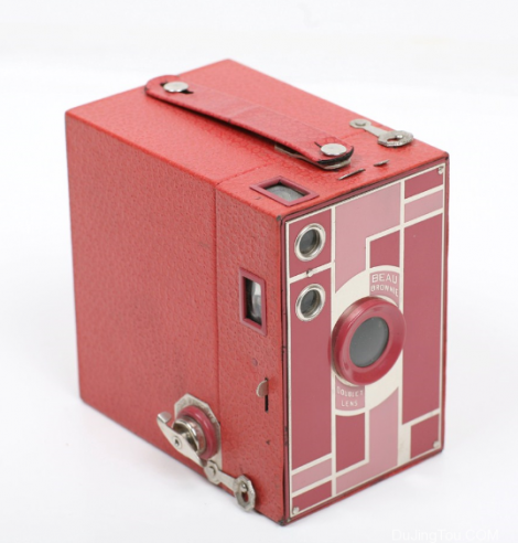 Beau Brownie是由Walter Dorwin Teague与其他Kodaks(如Super Six-20,Bantam特别版和Gift Kodak)共同设计的。该相机是金属装饰的框式相机,带有装饰艺术风格的面板,在明亮的镀铬上具有两种色调的珐琅图案。外壳与搪瓷相匹配。