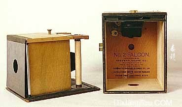 2号猎鹰于1897年推出,用于在101号胶卷上拍摄3-1 / 2 x 3-1 / 2的照片。快门通过镜头下方的小黄铜旋钮张紧。将相机拉成两部分,一个盒子状的外壳,并在一侧固定了附件,将相机打开。该相机在1899年被改进的型号所代替,被恰当地命名为第二号猎鹰改进型,并通过可拆卸的后部和侧面完成装载。反过来,同年又被2号柔印所取代
