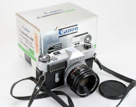RM是Canonflex的最终型号,也是迄今为止最成功的型号。它旨在吸引业余摄影师。像RP一样,它有一个固定的棱镜,但是相机的顶部面板被抬起,从而减少了取景器驼峰在中央的突出。放弃了仪表上的夹子,取而代之的是安装在正面的内置硒电池,仪表针可以通过顶部的窗户看到。这也是底板上触发风的终结。