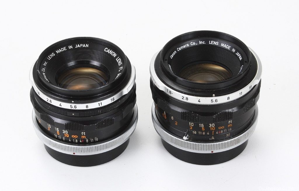50 / 1.8佳能FL有两个版本。第一个版本于1964年3月推出,第二个版本于1968年3月推出。以后的版本可以通过图的自动/手动开关进行识别。