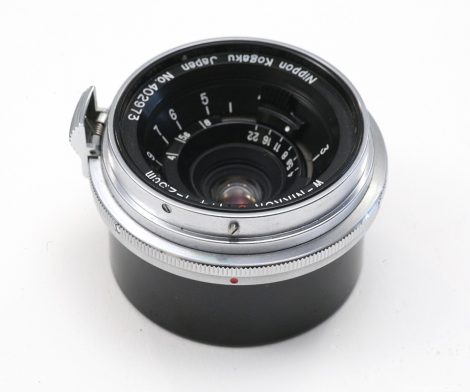 1953年11月,日本工学院推出了25/4 Nikkor。对称的四元素设计,非常紧凑和轻便。序列号从402500开始,到大约403500,总计约为2500。镜头从黄铜镜筒上的铬改成403500左右的合金镜筒上的黑色饰面。