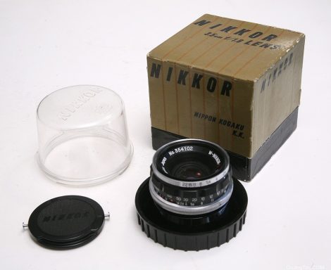 在1950年代,摄影师开始转向35mm作为普通镜头。1956年9月,Nippon Kogaku推出了最快的广角镜,直到1970年发布35 / 1.4Nikkor。35/ 1.8的镜筒采用了现代风格,既具有视觉吸引力,又非常舒适。采用。该镜筒还用于非常晚的35 / 2.5镜头,但不在测距仪产品线的其他镜头上使用。它的设计确实成为反光镜筒的前身。从光学上讲,这是一个非常现代的设计,利用镧玻璃来实现平场校正。